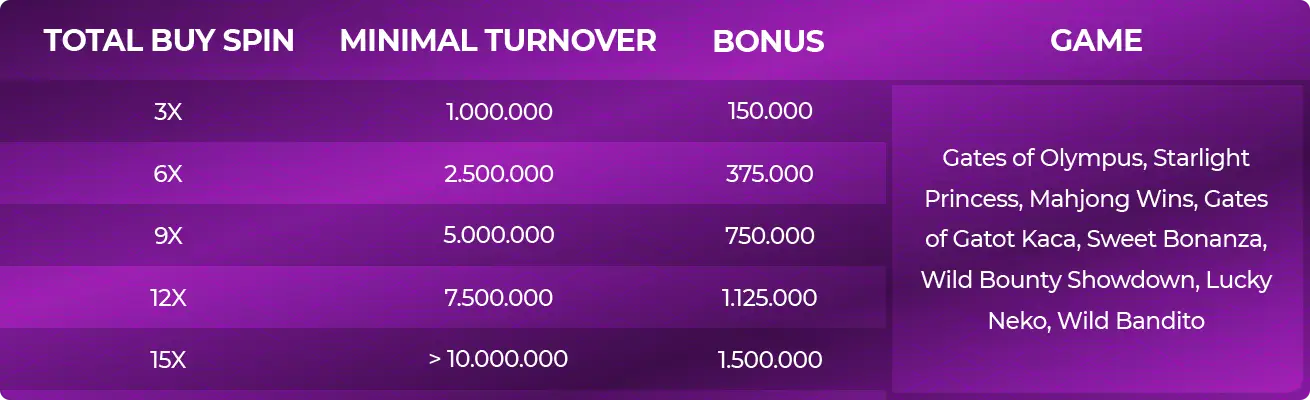 | Bonus Extra Kupon | 7.000.000 : 3.500.000 = 2 Kupon | |||